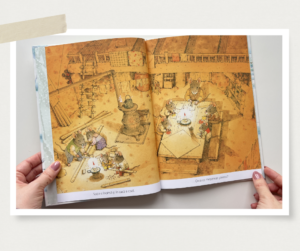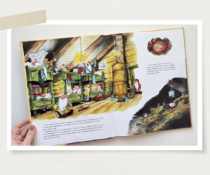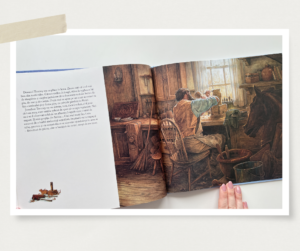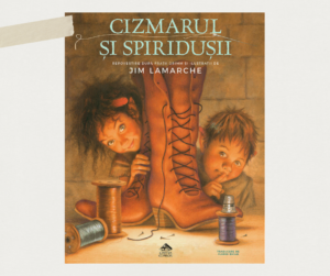 Am adăugat această carte în biblioteca noastră în 2024 și m-a cucerit. Jim LaMarche a repovestit basmul Fraților Grimm, povestea unui cizmar și a soției sale, care ajunseseră tare săraci. Într-o noapte, cizmarul își lasă ultima bucată de piele pe bancul de lucru, intenționând să facă o pereche de pantofi a doua zi. Spre uimirea lui, a doua zi găsește o pereche de pantofi perfect lucrați. Acest ajutor misterios continuă mai multe nopți la rând, iar cizmarul și soția lui descoperă cine erau binefăcătorii lor, doi spiriduși.