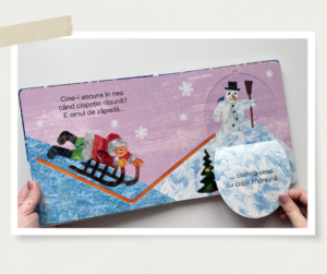 Iubirea pentru cărțile cu clapete a început puțin înainte de 2 ani în familia noastră, iar cărțile Usborne au fost în topul preferințelor băiețelului meu în acea perioadă. Cartea aceasta răspunde la mai multe întrebări – din ce e făcută zăpada, cum arată un fulg de zăpadă și câte laturi are, cât de mari pot fi fulgii de zăpadă, ce se întâmplă când zăpada se topește.