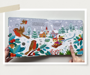 Putem fi de acord că cei de la Usborne fac magie atunci când e vorba despre aceste cărți cu sunete? Citind această carte simțim frumusețea sezonului rece, ascultând sunetul pașilor în zăpada proaspătă, clinchetul clopoțeilor, colindătorii și cântecul păsărilor de iarnă.