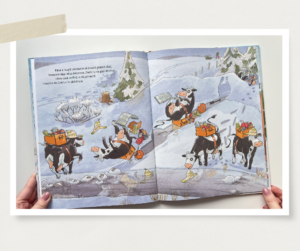 Lieselotte face parte din biblioteca noastră de mult timp și această poveste a fost și este îndrăgită de la mic la mare. De Crăciun, Lieselotte e o văcuță-poștăriță, îl ajută pe poștaș să livreze pachetele înainte de Crăciun. Văcuța se rătăcește pe drumul spre casă, iar poștașul îi încredințase cadourile pentru fermieră și pentru toate animalele de la fermă. Oare cum va ajunge Lieselotte acasă?